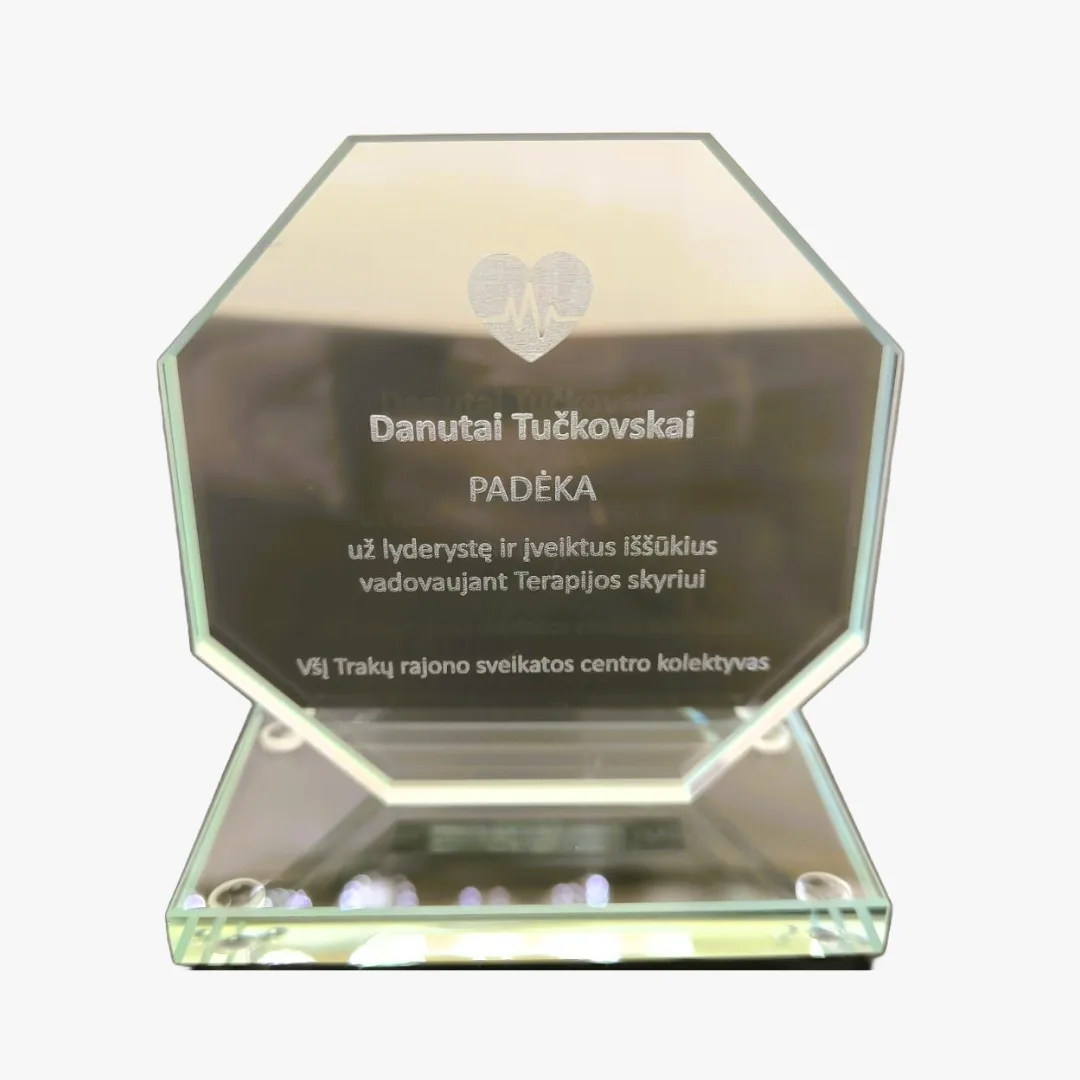 - Stikliniai medaliai ir vazos – elegantiškos dovanos mokytojams, kolegoms ar artimiesiems.