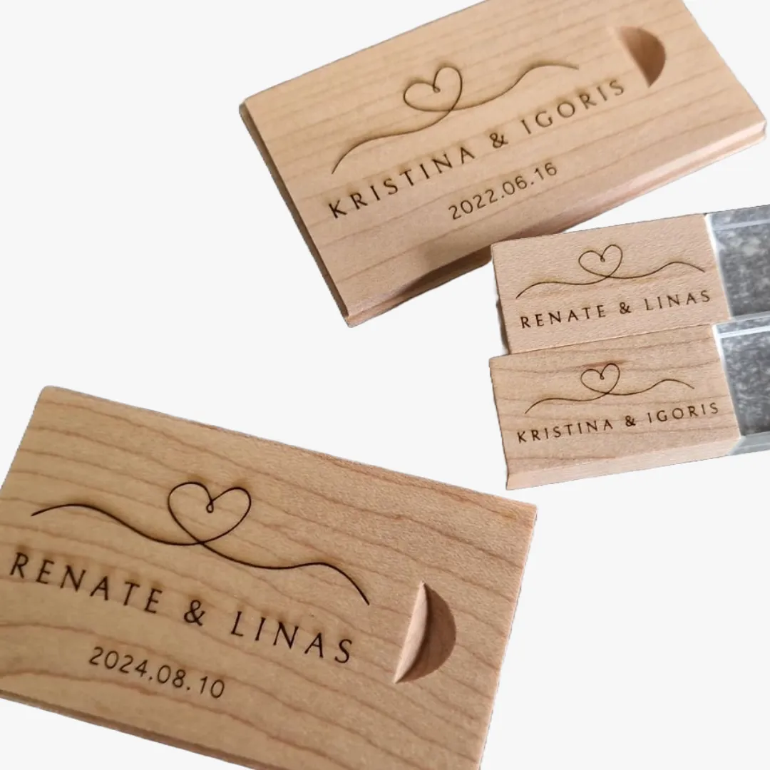 - Vestuvių atributika – graviruoti kvietimai, dėžutės, spynelės vestuvėms, personalizuoti suvenyrai.