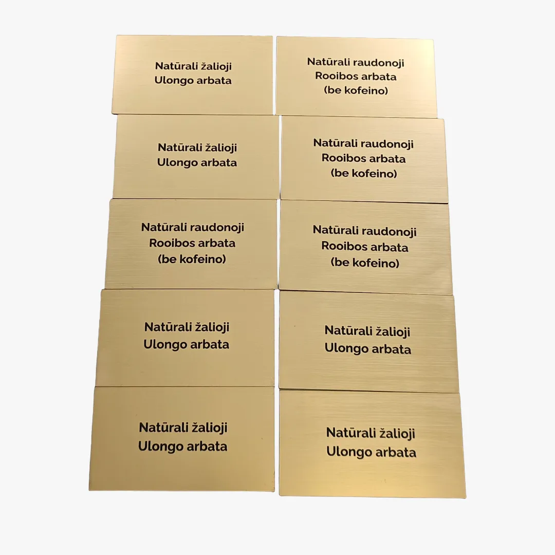 Visos lentelės gaminamos naudojant lazerinį graviravimą, kuris užtikrina nepriekaištingą tikslumą, ilgaamžiškumą ir atsparumą aplinkos poveikiui